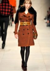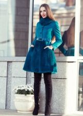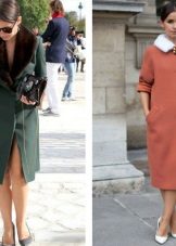 - Jam kecil. Gaya ini akan menjadi popular di kalangan pereka dan wanita sendiri. Dilengkapi, dibakar, dengan atau tanpa tali pinggang, ia menekankan angka itu, menjadikan perempuan simpanannya sangat menarik. Kotak semacam itu kelihatan sangat mengagumkan dengan kolar selendang bulu yang besar dan besar atau kolar asimetri.