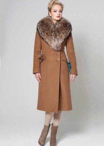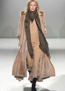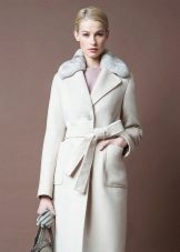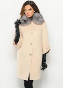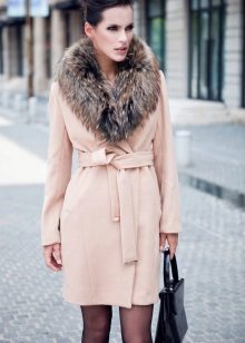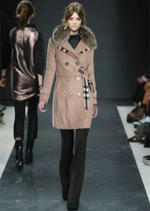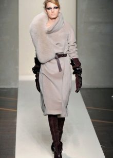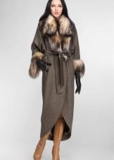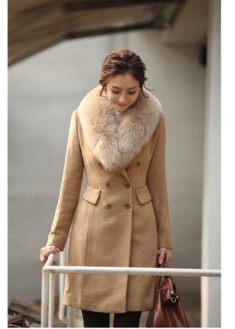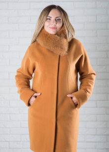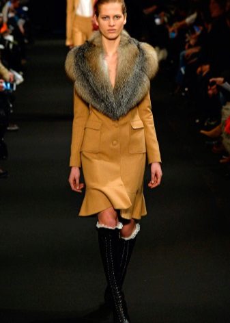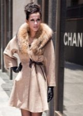 - Cashmere. Penghalusan dan gaya, kelembutan dan kelembutan, ringan dan ketahanan adalah ciri-ciri penting dalam fabrik demi musim ini untuk lapisan mana-mana model. Kerah bulu yang terbuat dari musang kutub, musang, sable hanya akan menekankan keanggunannya dan sederhana, tidak menimbulkan kemewahan.