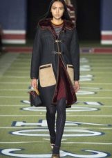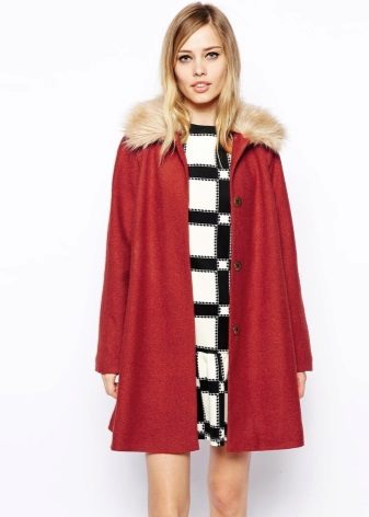 - Kebesaran bentuk, kedudukan pendek, kaki pendek - panjang harus di atas lutut atau bahkan ke tengah paha. Tudung dengan hem di kolar, rak dan hem dengan bulu dalam warna kot akan kelihatan hebat pada anda.
