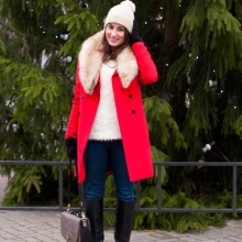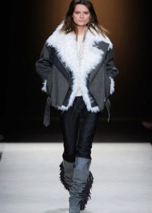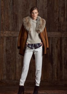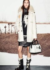 - Dalam kot pendek dengan kolar bulu, anda akan kelihatan hebat jika anda memakai seluar gelap yang sempit dan but buku lali atau but dengan kasut tinggi atau sederhana. Rok pensel juga kelihatan hebat dengan kot seperti itu, terutama dengan stilettos. Ia boleh ditambah dengan topi dengan atau tanpa tepi.