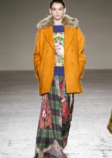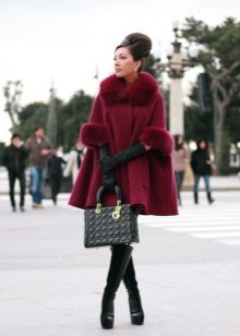 - Kain pelik. Satu klasik genre yang membolehkan anda untuk bereksperimen dengan panjang dan gaya mantel hangat, serta bulu bulu bentuk apa pun (turndown, apache, selendang, berdiri, kerah tudung), saiz (dari kecil hingga tebal) dan jenis (dari arnab hingga sable).