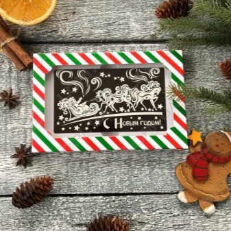 Penyelesaian alternatif dan sedikit lebih rumit adalah Selamat Tahun Baru kad ucapan coklat. Di sebuah bandar besar, ia boleh menjadi lebih mudah dengannya, kerana ada kemungkinan bahawa beberapa kedai pastri telah mengeluarkan sesuatu yang serupa dengan kata-kata selamat ucapan selamat di permukaan jubin.