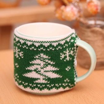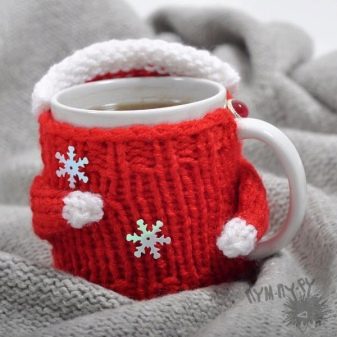 - Baju serigala - yang seolah-olah tidak berguna, tetapi pada masa yang sama aksesori yang sangat comel yang menambah keselesaan dan pada masa yang sama membolehkan tangan tidak dibakar jika minuman di dalamnya panas. Anda boleh membuat apa-apa yang hadir dengan cara yang berbeza - siapa tahu cara menenun atau bersatu, menggunakan kaedah ini, tetapi anda juga boleh menjahit produk dari kain atau kain lain yang serupa.