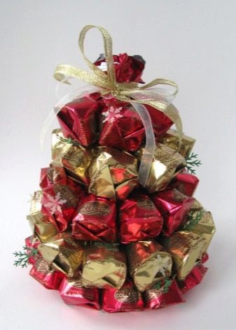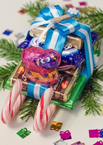 - Pemeliharaan Tahun Baru - Pilihan untuk mereka yang tidak kuat dalam seni, tetapi kawan-kawan dengan fantasi. Secara umum, ini adalah satu lagi variasi penghantaran gula-gula, yang mana banyak telah dikatakan di atas, hanya di sini intipati gula-gula hadiah itu tidak segera jelas.