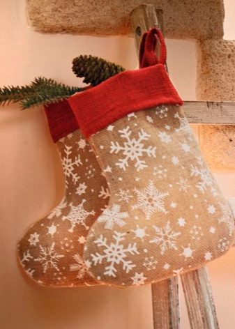 - Sock Krismas untuk hadiah - Ini adalah aksesori yang kini hampir tidak digunakan oleh tujuannya. Di kebanyakan rumah di mana dia berada, mereka hanya mendapatnya sebelum Tahun Baru tetapi anda boleh mengalahkan reka bentuknya dengan melakukan sesuatu yang lebih berguna.
