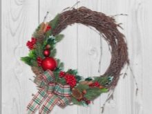 - Komposisi karangan bunga Natal dengan loceng, bola, reben untuk menghiasi meja atau pintu depan;