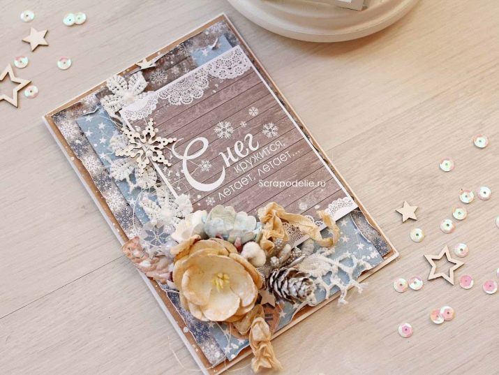 Kad pos kecil buatan sendiri - dari kadbod berwarna, kertas beralun, kertas tisu atau apa-apa kertas elegan lain, anda boleh membuat karya-karya sebenar Tahun Baru, perkara utama adalah bahawa tiada siapa di seluruh dunia akan mempunyai kad pos yang sama pada hari ini. Gunakan gambar comel - beruang, anak kucing, bullfinches, jangan lupa untuk menandatangani penciptaan anda dengan hasrat kebahagiaan dan semua yang terbaik. Anda boleh menguruskan kad Tahun Baru dalam apa-apa gaya - pensil, buku scrapbooking, quilling.
