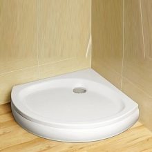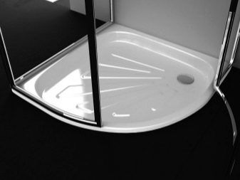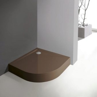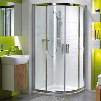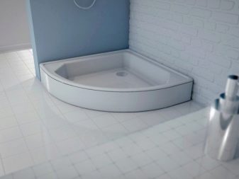 - Radial, separuh bulatan atau radial. Palet seperti itu mempunyai pintu gelangsar, mempunyai bentuk bulatan suku dan dipasang di salah satu sudut bilik mandi. Borang ini membolehkan anda menjimatkan ruang percuma di dalam bilik dengan ketara, tetapi hakikat bahawa tidak ada sudut menjadikannya benar-benar selamat untuk kanak-kanak kecil dan orang tua.