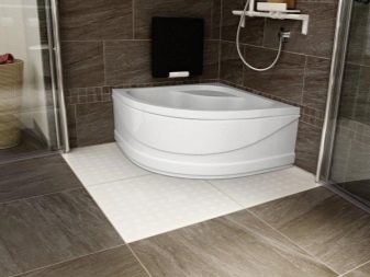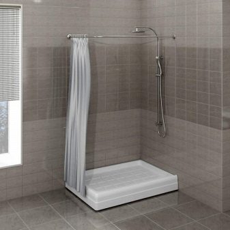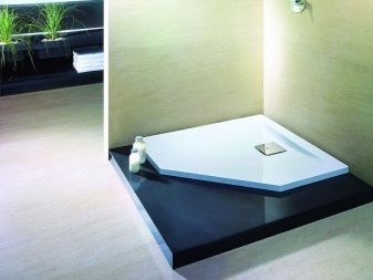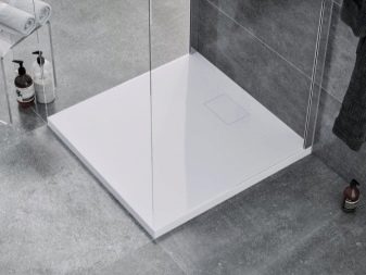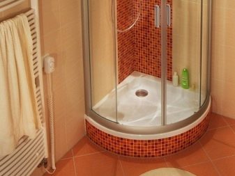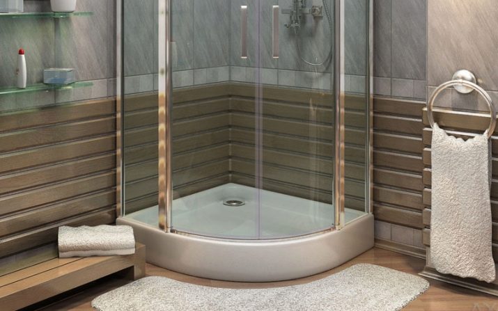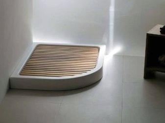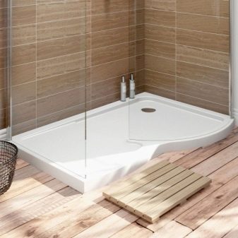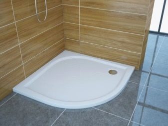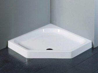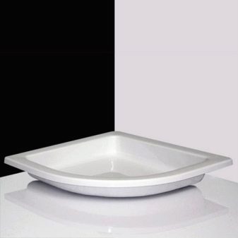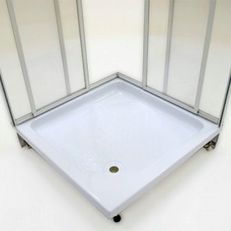 - palet adalah elemen yang perlu apabila memasang ruang bilik sudut dengan pintu gelangsar, di samping itu, dulang bersudut secara kualitatif boleh menjimatkan ruang bebas di bilik mandi.
