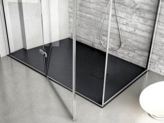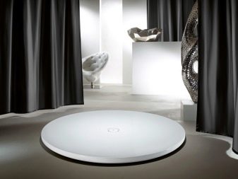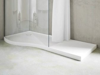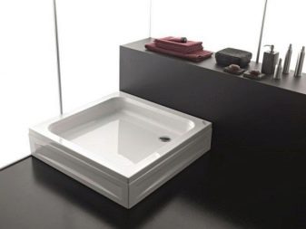 - Dulang mandi rendah (iaitu, model dengan kedalaman tidak lebih daripada 10 cm) kelihatan cantik dan bergaya, namun mereka hanya boleh digunakan untuk mandi dan tidak lebih. Banyak perkara apabila memilih model sedemikian bergantung pada jenis tirai di gerai. Sekiranya ia kaca, maka ketinggian sampingan tidak memainkan peranan, tetapi tirai tekstil akan sangat merosot dari air yang jatuh di atasnya. Di samping itu, anda perlu memberi tumpuan kepada kualiti sistem kumbahan dan saluran air - jika ia tidak berfungsi dengan baik, maka lebih baik tidak memilih tempat yang rendah, jika tidak, air akan mengalir ke tepinya.