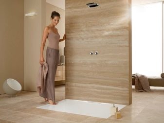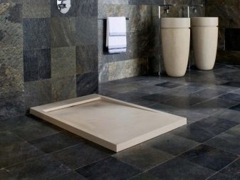 Biasanya, dulang pancuran batu dipilih oleh pemilik dengan anggaran besar untuk reka bentuk bilik mandi - sampel dari batu semula jadi lebih mahal daripada semua analog lain.
