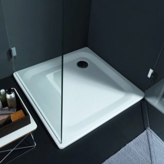 - Ketahanan. Oleh kerana kekakuan keluli yang tinggi, dulang pancuran seperti ini dianggap agak kuat dan tahan terhadap tekanan mekanikal.