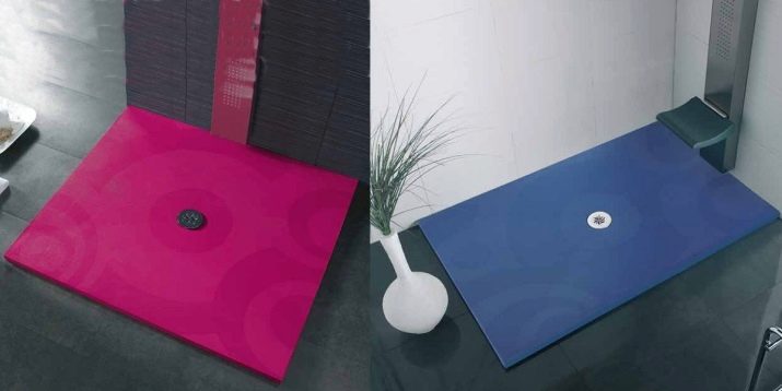 Satu tambahan dulang pancuran dicat boleh dianggap sebagai keaslian, penampilan yang luar biasa dan keharmonian dengan skema warna yang dipilih di bilik mandi.