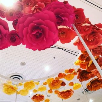 Melibatkan diri dalam merancang sendiri zon foto atau menghias bilik untuk percutian, adalah bernilai mengingati penciptaan komposisi bunga dari foamiran. Bunga-bunga besar yang dilekatkan ke dinding, tidak sukar untuk melakukannya sendiri, tetapi mereka akan kelihatan sangat mengagumkan.