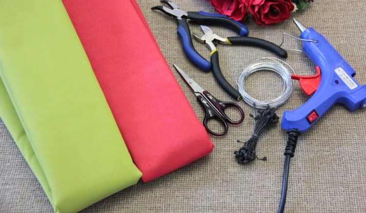 Untuk menghasilkan bunga foamiran, sebagai tambahan kepada bahan itu sendiri dalam warna yang berbeza, anda perlu stapler, gam panas dan, sebagai peraturan, asas untuk tunas. Lembaran hendaklah dipilih dengan ketebalan 0.5 hingga 2 milimeter, memberikan keutamaan kepada jenis glitter dan marshmallow. Besi akan diperlukan dalam kerja untuk memberikan kelopak bunga yang indah, dan cetakan akan memungkinkan untuk memberikan tekstur kepada mereka. Dengan bantuan serbuk domba, baldu dibuat pada permukaan stamen dan daun.