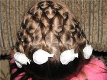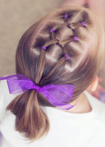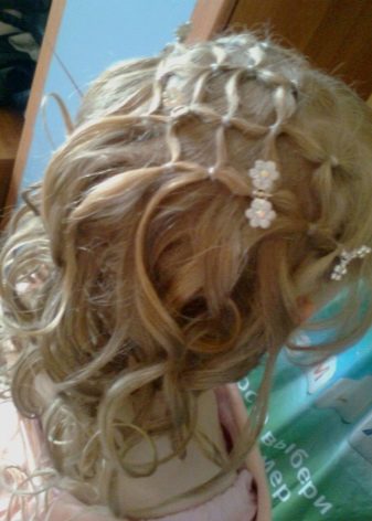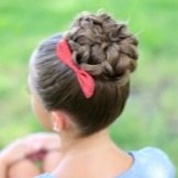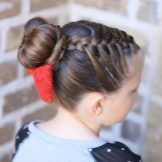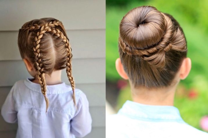Walaupun gaya rambut yang cantik kelihatan visual kompleks, mereka cukup mudah dalam pelaksanaan. Mana-mana ibu akan dapat mengikat braids salib dan mengumpul bungkusan yang tinggi. Keriting yang dikumpulkan tidak hanya memenuhi keperluan sekolah, tetapi juga kelihatan bergaya dan asli.