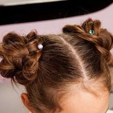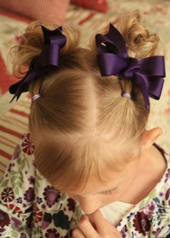 Berdasarkan panjang dan jenis keriting pada gadis itu, anda boleh memilih pilihan terbaik. Peletakan boleh bukan hanya mudah dan bergaya, tetapi juga mudah dilakukan. Dalam kes apabila ibu tidak mempunyai masa di waktu pagi untuk menumpukan masa untuk mencipta gaya untuk anak perempuannya, dia akan mampu mengatasi dirinya.