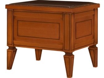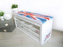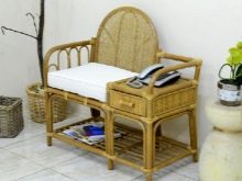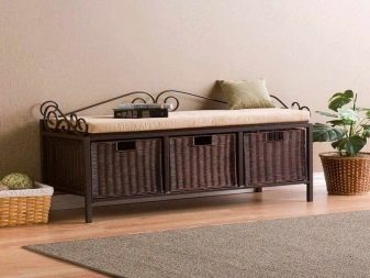 - Bench dengan sistem storan. Tidak seperti pandangan sebelumnya, ia juga dilengkapi dengan laci yang mudah dan mudah. Mereka dipasang di bawah kerusi itu. Kotak boleh sama ada kayu klasik atau rotan, plastik.