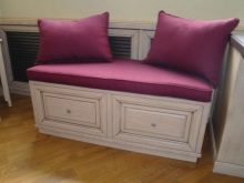 - Tempat duduk. Ia sesuai untuk dewan kecil, kerana roda disediakan dalam reka bentuknya, dan perabot boleh digulung atau tersembunyi pada bila-bila masa di bawah meja sempit. Tudung atas produk digunakan sebagai tempat duduk; tilam lembut biasanya diletakkan di atasnya. Di bahagian bawah tempat duduk, anda boleh menyimpan perkara yang berbeza.