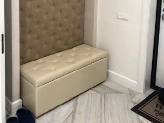 - Bangku Kerusi sedemikian sangat sesuai dengan kawasan koridor yang luas. Ia tidak mempunyai laci, rak dan elemen tambahan lain dalam reka bentuknya. Biasanya bahagian atas perabotnya pepejal, jadi ia dihiasi dengan kotak-kotak atau bantal.