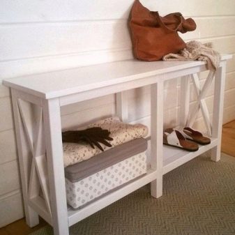 Dewan masuk, tanpa mengira kawasannya, mesti dilengkapi dengan tempat yang selesa di mana anda boleh duduk. Oleh itu, banyak pemilik rumah meletakkan kerusi khas di koridor. Ia bertindak sebagai salah satu barangan dalaman dan membolehkan kasut yang selesa untuk kedua-dua orang tua dan kanak-kanak. Di samping itu, pada bangku seperti ini anda boleh berehat selepas mendaki tangga atau berjalan kaki panjang. Kini dijual ada model dalam bentuk meja kecil yang diperbuat untuk sarung tangan, beg dan aksesori lain, serta dengan laci dan rak terbuka di mana anda boleh menyimpan pelbagai perkara.