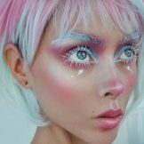 - Gaya ini sesuai untuk kanak-kanak perempuan yang suka solek asli dan mempunyai penampilan yang luar biasa dan ekspresif. Warna putih akan menarik perhatian, memberi tumpuan kepada mata.