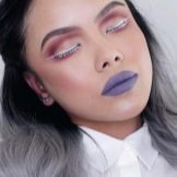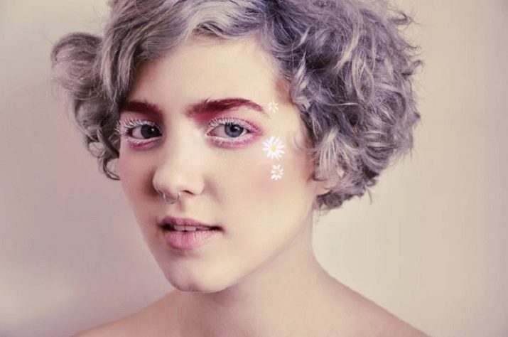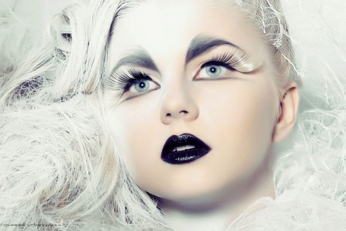 - Apabila menggabungkan rambut putih salji dengan warna cerah dan gelap, artis solek profesional disyorkan untuk menggunakan komposisi yang berterusan dan berkualiti tinggi. Jika solek mula runtuh, maka ini akan merosakkan kesan bulu mata cahaya.