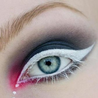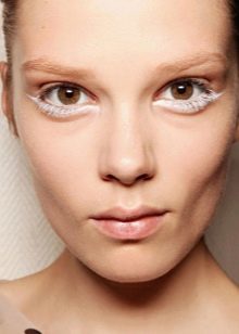 - Dengan putih, anda boleh menyerlahkan matajika tidak ada keinginan untuk memilih bayang-bayang terang dan bulu mata berwarna. Walaupun nada putih berbeza dari selebihnya dalam berkecuali, dalam solek ia kelihatan ekspresif dan mengagumkan.