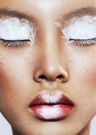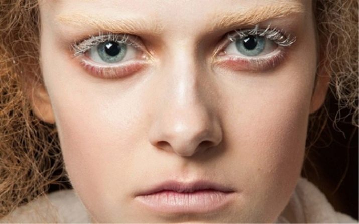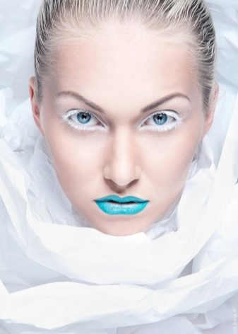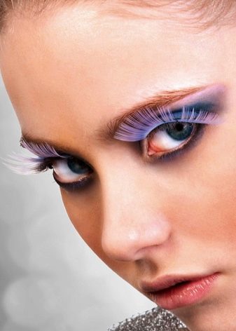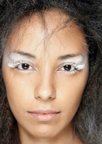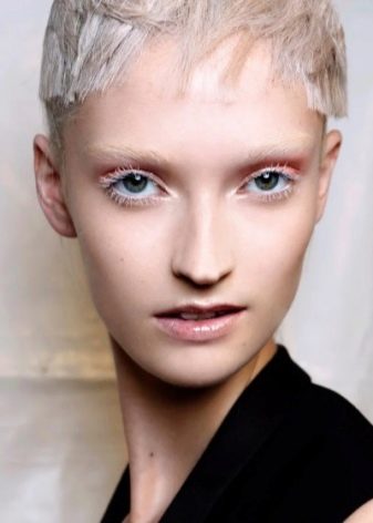 - Gadis-gadis dengan kulit yang saksama juga akan pergi untuk bulu mata putih. Untuk menjadikannya ketara, perlu menggunakan bayang-bayang terang, terhadap latar belakang rambut salju yang putih akan menonjol dengan terang.