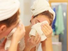 - Selepas mencuci setiap, satu tuala terry mesti digunakan. Lebih-lebih lagi, muka harus disapu dengan gerakan menembak, dan bukan dengan geseran yang kuat. Dalam kes ini, jangan sentuh mata.