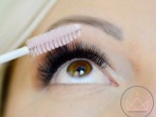 - Pada akhir ahli sihir, anda perlu menyikat silia. Oleh itu, pemilik ekspresif akan dapat memeriksa kualiti kerja. Pertama sekali, adalah perlu untuk memberi perhatian kepada kehadiran gam dan benjolan. Sekiranya ada, maka tuan bukan profesional.