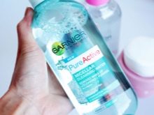 - Apabila pulang ke rumah, anda mesti mengeluarkan solek dari mata. Untuk ini, air micellar boleh digunakan. Dengan bantuannya, solek cukup mudah dikeluarkan, dan komposisi air micellar tidak membahayakan sambungan rambut dengan cara apa pun.
