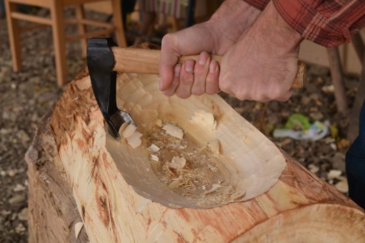 - Ax perlu untuk pemprosesan kasar bahan kerja, yang dijalankan dalam peringkat pertama kerja dengan kayu. Menggunakan kapak, anda boleh dengan mudah mengeluarkan kulit kayu dan memberikan bahan kerja yang kasar, bentuk awal.