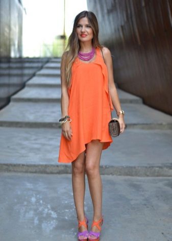 Jangan lupa bahawa di bawah setiap aksesori pakaian mestilah betul dan dipilih dengan menarik. Jadi, dengan anting-anting cerah saraf yang pendek musim panas dengan batu-batu kecil (dan batu-batu itu harus harmoni dalam warna dengan pakaian), kalung dan gelang besar (logam atau kayu) akan kelihatan baik.
