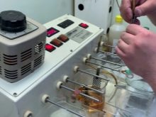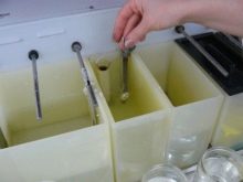 Penyelesaiannya harus sama rata di seluruh permukaan produk. Selepas itu Arus elektrik dilalui melalui penyelesaian. Reaksi kimia berlaku, akibatnya adalah pelepasan rhodium. Ia meliputi keseluruhan kawasan produk dengan lapisan nipis.