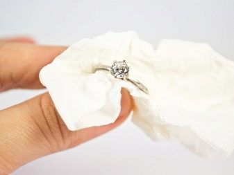 Jangan gosok tangan dengan cincin berlapis rhodium. Sebarang zarah yang kasar merosakkan lapisan pelindung. Apabila merawat barang-barang yang disalut dengan rhodium, produk penjagaan khas untuk membersihkan perak tidak akan berfungsi. Mereka dibenarkan untuk membersihkan hanya perak biasa, tidak mempunyai sebarang lapisan.