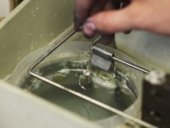 Rhodium digunakan untuk logam dengan kaedah galvanik. Dalam kes ini, produk tambahan berfungsi sebagai anod, dan hiasan itu sendiri bertindak sebagai katod.