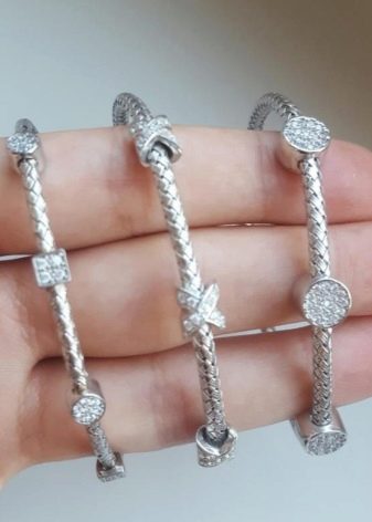 Selepas enam bulan beroperasi, gelang standard yang diperbuat daripada perak tulen ditutup dengan calar kecil dan perlu digilap. Untuk yang serupa Penggilap perhiasan bersalut rhodium tidak diperlukan untuk beberapa tahun selepas pembelian. Warna putih perak yang sejuk dari rhodium sangat menyerupai platinum. Jika anda meletakkan cincin perak berwayar dan analog dalam emas putih bersebelahan dengannya, sukar untuk mencari perbezaan yang jelas dalam produk tersebut. Fakta ini membolehkan anda menggabungkan perhiasan dari logam yang berbeza dalam satu set.