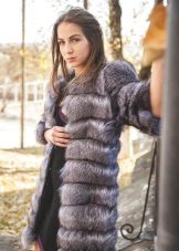 - Baru-baru ini, kot bulu yang dikait yang dibuat dengan cara yang luar biasa telah menjadi popular. Sebelum ini, benang dibuat dari kulit, dalam kes ini, rubah perak, menggunakan teknologi khas. Selepas ini, proses menganyam web bermula, dan pada masa ini terdapat banyak jenis merajut. Kot ini nipis, bulunya pendek, tetapi lembut, seperti sutera. Produk rajutan lebih ringan, jadi ia boleh dipakai dalam cuaca kering, bahkan pada musim gugur atau musim bunga.
