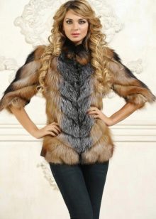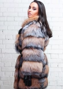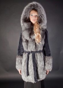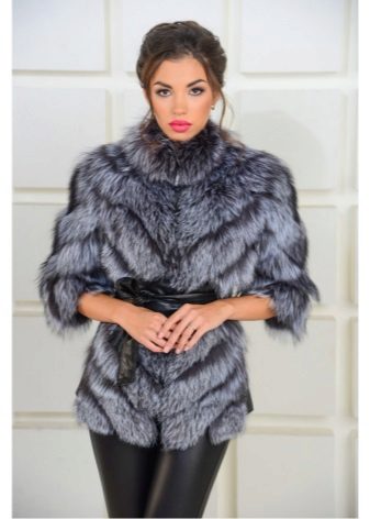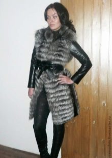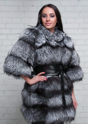 Sebuah bulu bulu rubah perak sepenuhnya mencukupi, ia tidak boleh digabungkan dengan bulu lain tanpa mewujudkan ketidakharmonian. Tetapi ada kemungkinan menggunakan sisipan kulit, suede. Pertama sekali, kita bercakap tentang kaedah jahitan apabila mengulang jalur rajutan atau suede dijahit antara jalur bulu. Tetapi kadang-kadang sisipan digunakan sebagai elemen hiasan. Sebagai contoh, kot bulu mungkin mempunyai lengan kulit penuh atau tali pinggang korset kulit.