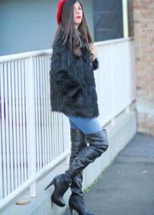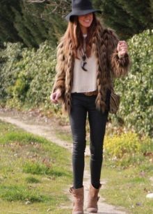 Kot bulu akan kelihatan hebat dengan but tinggi, but buku lali, dan kasut yang kemas. Adalah lebih baik memilih kasut dengan tumit, platform atau baji, kerana tidak setiap tapak datar sesuai.