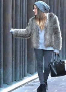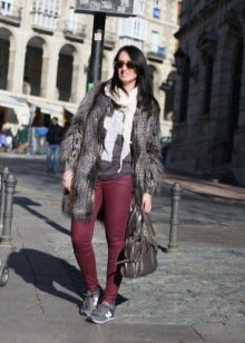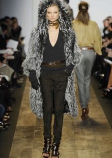 Rubah perak mempunyai penampilan yang sangat canggih, tetapi ini tidak bermakna bahawa dengan kot bulu seperti ini, anda tidak boleh membuat penampilan setiap hari. Model pertengahan panjang yang paling serba boleh.Dengan gaya, bulu ini akan digabungkan dengan hampir semua kecuali pakaian sukan dan kasut. Daripada bahan, semuanya kecuali bulu lain, misalnya, pada beg atau but, akan dilakukan.