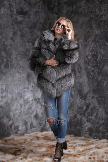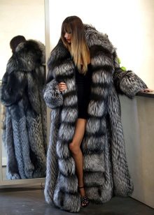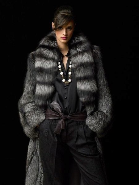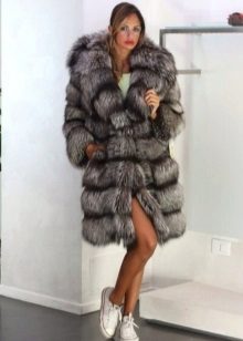 Rubah perak berbulu dan tebal, jadi model bulu kot menjadikannya mudah, ringkas. Di samping itu, selalunya ini adalah panjang midi dan atau dipendekkan, kerana produk maxi bukan sahaja berat berat, tetapi juga dalam penampilan, ia merosakkan imej kerapuhan feminin.
