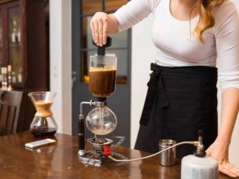 - Sumber haba. Pada dasarnya, fungsi ini dilakukan oleh pembakar alkohol yang mudah. Tetapi barista berpengalaman moden sering menggunakan model khusus dengan pembakar gas. Selalunya mereka adalah komponen penting dalam satu set beberapa model sulingan moden. Kelebihan utama peranti sedemikian ialah dengan mereka ia mungkin untuk mengawal pemanasan dengan lebih tepat dengan syarat penyediaan minuman.