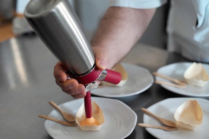 Seperti yang dinyatakan di atas, kremer digunakan secara aktif dalam masakan molekul.Contoh contoh model sedemikian ialah siphon iSi. Keupayaan utamanya ialah ia tahu cara membuat sup aerasi, adonan renyah dan buih panggang lain, sfera karbon. Pembuat krim ini adalah satu kejayaan dalam memasak, kerana ia membolehkan kita mengubah sepenuhnya rupa dan rasa makanan dan hidangan biasa kita.