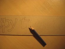 - Dekorasi dipotong dengan pisau tajam. Anda boleh menggunakan pelbagai instrumen perkeranian biasa. Prasasti panjang lebih mudah untuk dipotong bahagian.