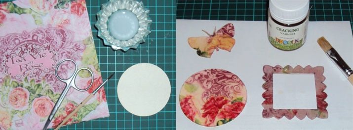 Bergantung pada idea itu, anda boleh memberikan hiasan volumetrik tekstur yang tidak biasa. Sebagai contoh, ia kelihatan menarik mengupas kesan cat. Untuk melakukan ini, anda perlu memohon parafin ke bahan kerja menggunakan teknologi khas. Boleh gunakan Teknik Craquelure.