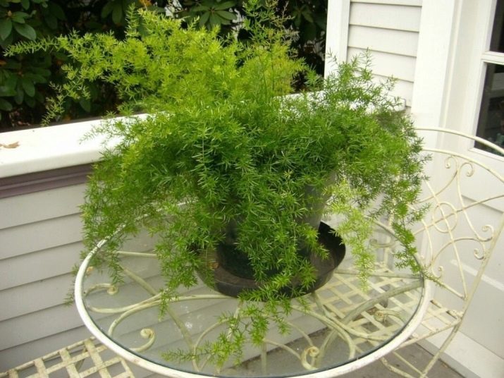 - Asparagus. Tumbuhan ini akan membawa banyak manfaat, kerana ia mempunyai sifat bakteria, mempromosikan penyembuhan pesat tisu yang rosak. Kerana struktur kompleks daun, banyak oksigen dilepaskan, yang sangat penting untuk tidur malam yang baik. Struktur lembaran yang luar biasa dengan sempurna memegang zarah debu. Mempunyai hanya satu tumbuhan di dalam bilik akan menyediakan udara yang bersih.