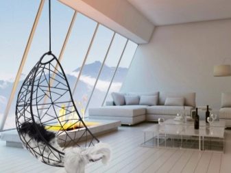 Terdapat juga variasi gantung dari kerusi telur. Mereka dilampirkan ke siling atau tripod khas. Reka bentuk jenis ini membenarkan perabot untuk berayun di udara. Oleh kerana kehadiran pengisi lembut dan bantal, anda boleh mencapai keselesaan maksimum. Tubuh produk tersebut dapat dibuat padat atau terbuka.