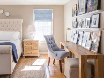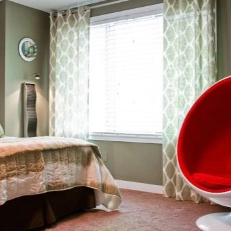 Ramai orang melengkapkan bilik tidur dengan unsur-unsur seperti kawasan kerja padat, teater rumah atau tempat yang selesa untuk kerja-kerja menggunting, membaca buku. Bagi yang terakhir, anda boleh meletakkan sofa atau kerusi kecil. Di kebanyakan bilik tidur terdapat ruang kosong untuk tempat yang kedua. Perkara utama ialah memilih model berkualiti tinggi kerusi yang akan selaras dengan seluruh alam sekitar.